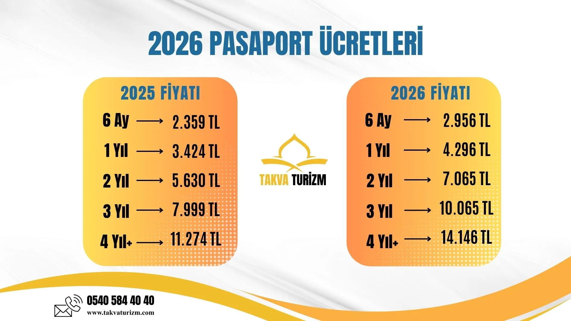 Bu dev rehberde, 2026 pasaport ücretlerini öğrenebilir, hangi pasaportu seçmeniz gerektiğini karşılaştırabilir, başvuru belgelerinizi hazırlayabilir ve umre seyahati planlamalarınızda önemli püf noktalarına ulaşabilirsiniz.