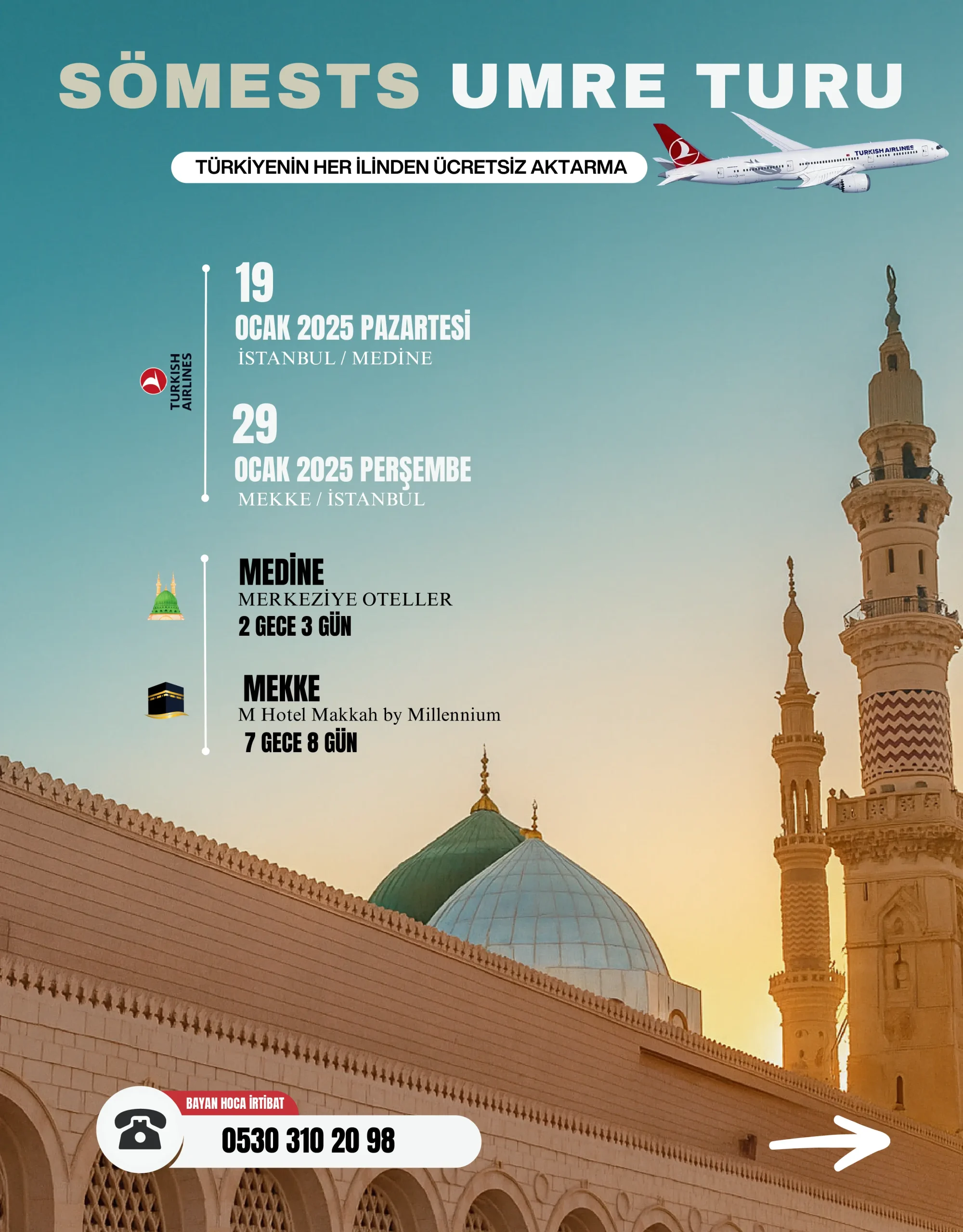 Özellikle gençler için sömestr umresi, dini bilgilerini pekiştirmek ve ibadetlerini daha bilinçli yapmak için bir fırsattır. Ayrıca sömestr tatili döneminde yapılan turların fiyatları da oldukça avantajlıdır.