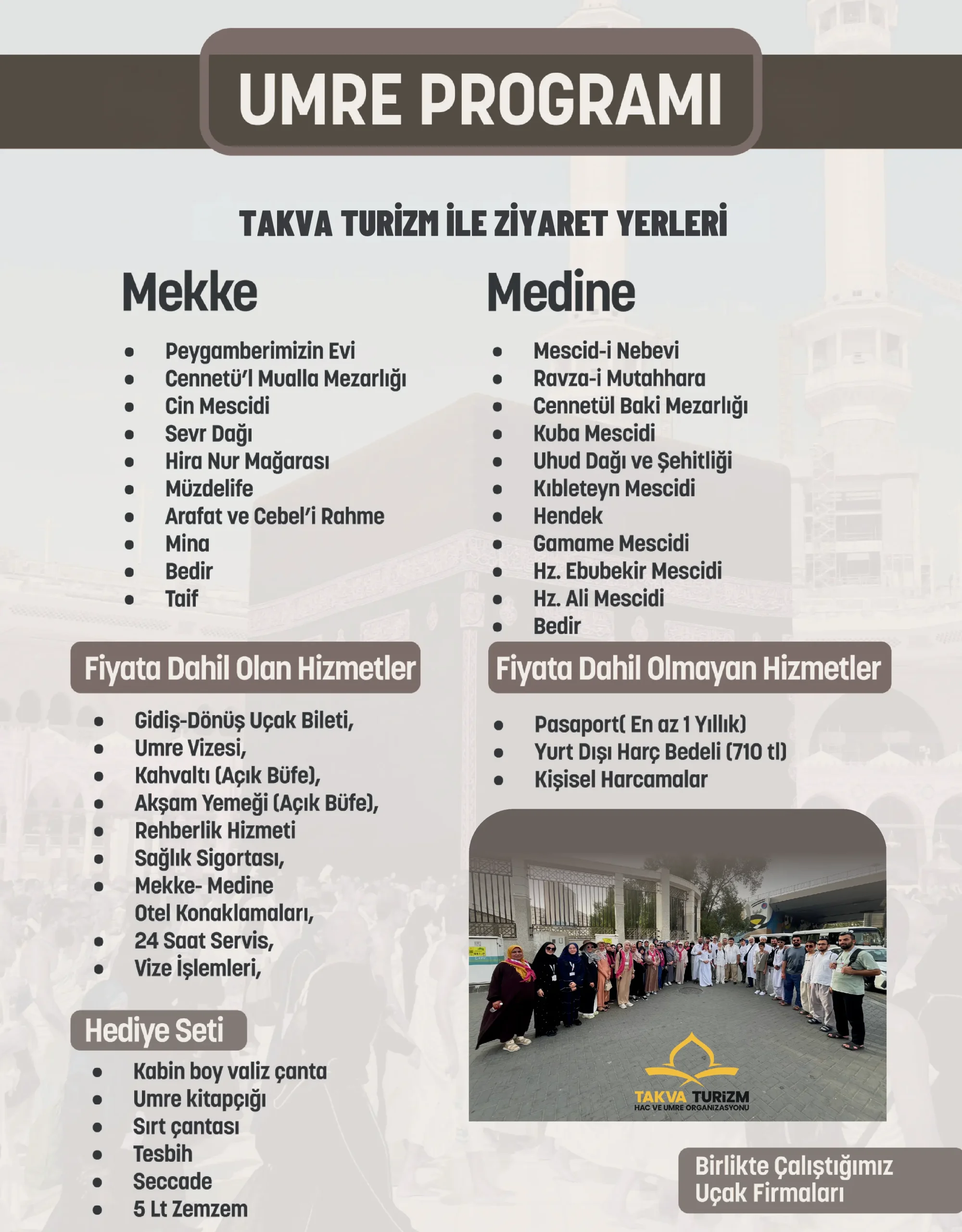 2026 yılında Takva Turizm, sömestr umresi öğrenciler ve aileler için en uygun fiyatlı paketleri hazırlamıştır: